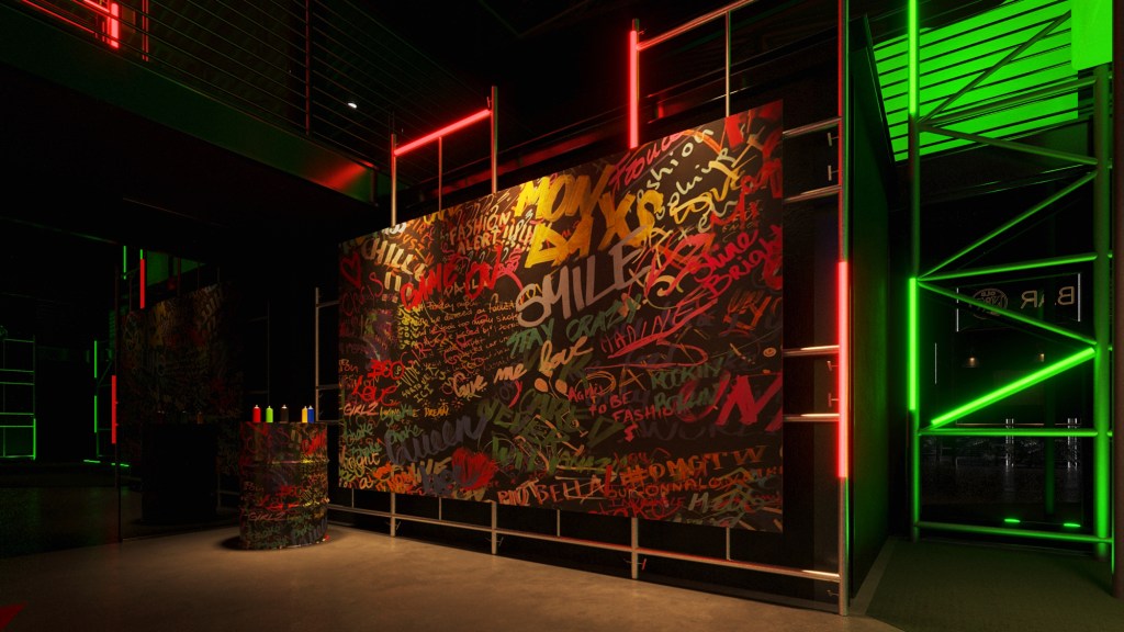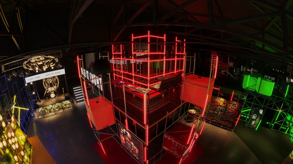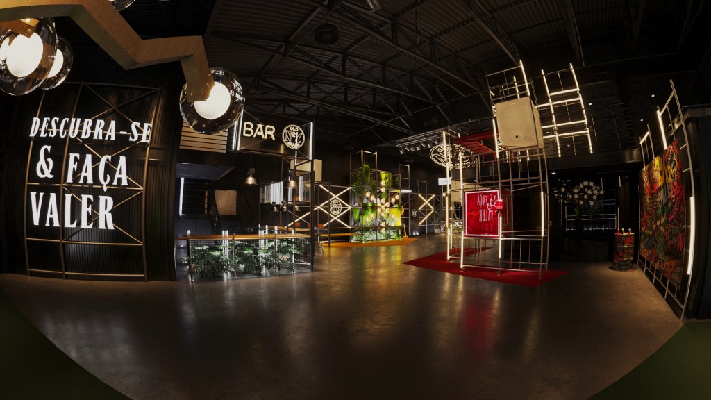 A cenografia reflete esse espírito transgressor, com ativações que exigem interação do público para acontecer. O espaço provoca e responde, transformando o ambiente em uma experiência viva, onde explorar e participar fazem parte da narrativa.